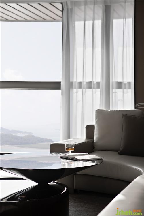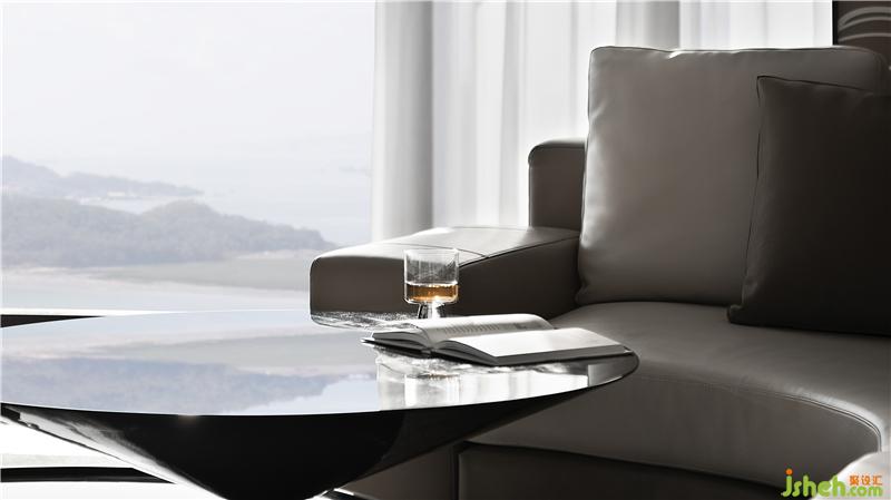 半圍式的洽談區(qū)有效過濾了外界的繁雜又保留獨立性,使之空間疏密有致而又互相滲透。在大幅玻璃幕墻下的自然光,配合空間選材質(zhì)感,靜默流動在光滑的地面,令空間在虛實相間,遠遠看去,仿佛呈現(xiàn)在波光粼粼的海面上。