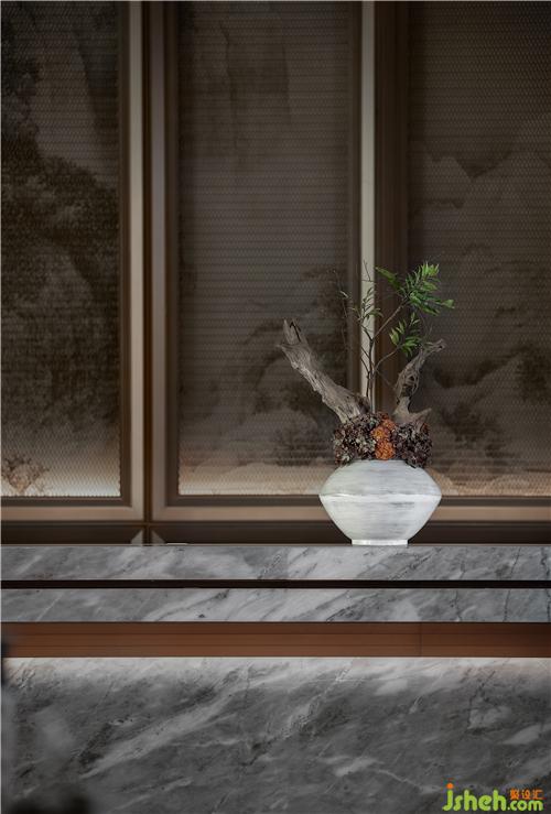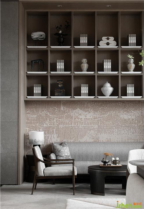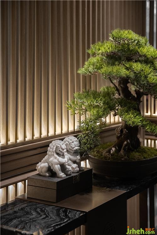 漫思MANS以格柵和“木”元素的“古”作為東方謙遜的美學(xué)語(yǔ)言,將東方謙和高雅的精神風(fēng)貌納入空間當(dāng)中,手法上去繁化簡(jiǎn),干凈的線條使得整個(gè)空間呈現(xiàn)“禮”的秩序感,從而凸顯東方形制的秩序與挺拔的視覺(jué)感。