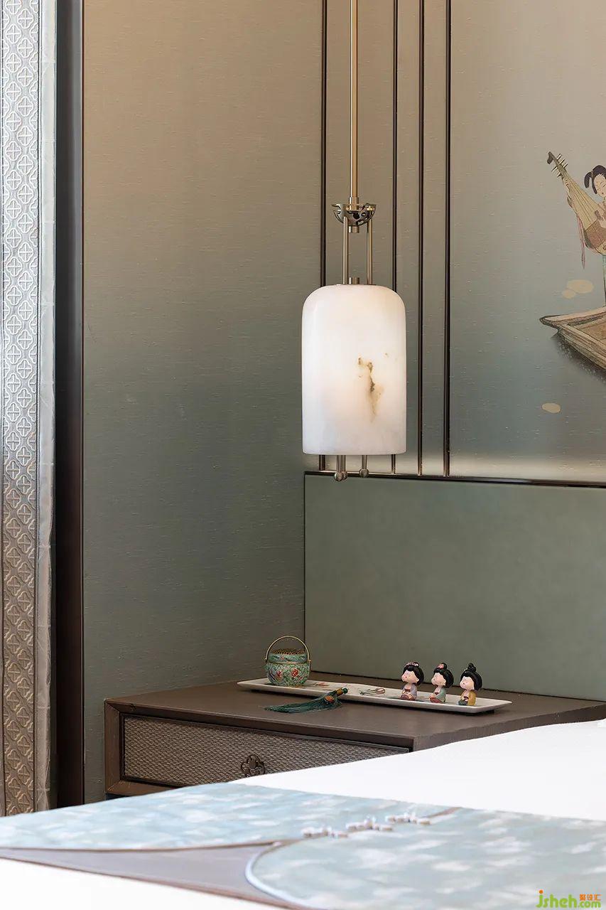 次臥以大方簡(jiǎn)潔、寧?kù)o素雅,極具東方色彩元素的陳設(shè)。室內(nèi)擷取清雅碧玉基色,溫度與質(zhì)感并存,營(yíng)造創(chuàng)造出一方安寧的休憩場(chǎng)所。