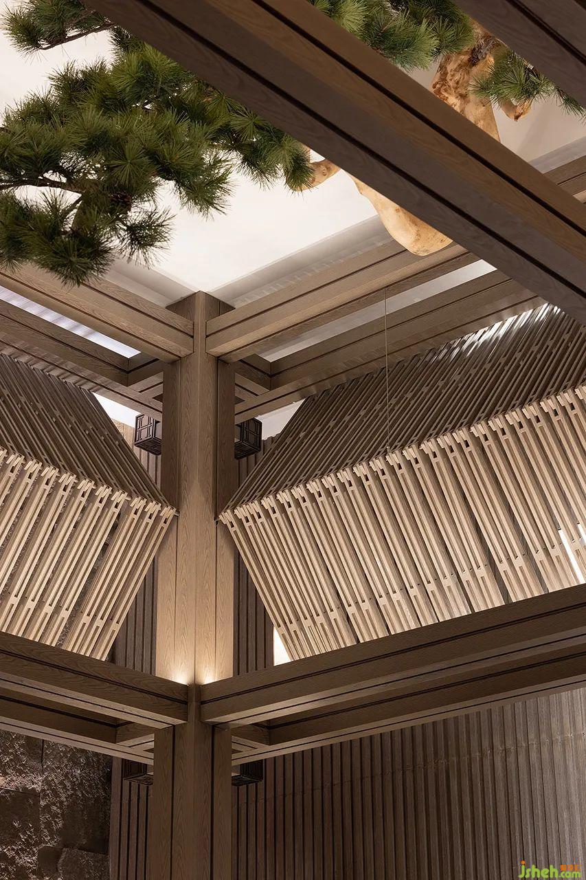 夾層的閱讀區(qū)呈現(xiàn)對話過渡,亦外亦里、亦靜亦動,歇山頂?shù)脑O計賦予室內一種建筑感。細部的探究觸及,立面凹凸感、層次與漸進,與空間意境相互呼應孕育出禪意之風,契合中和雅正之美。