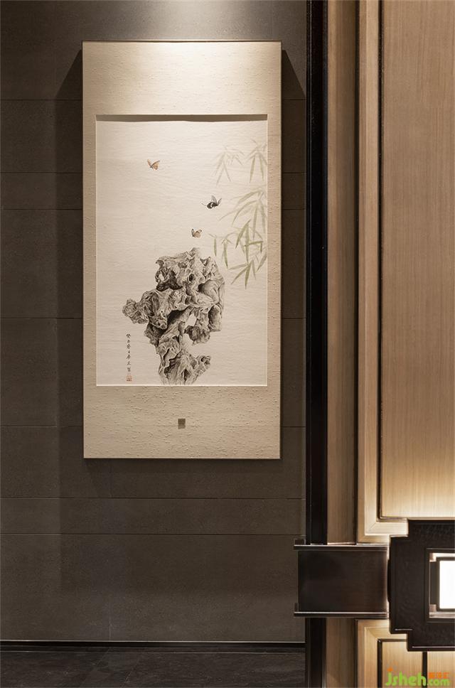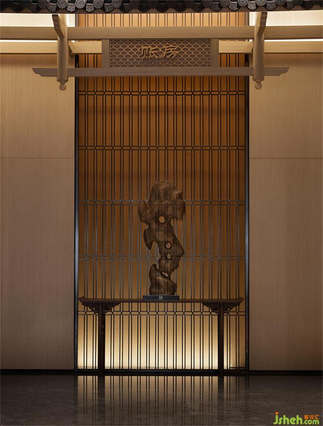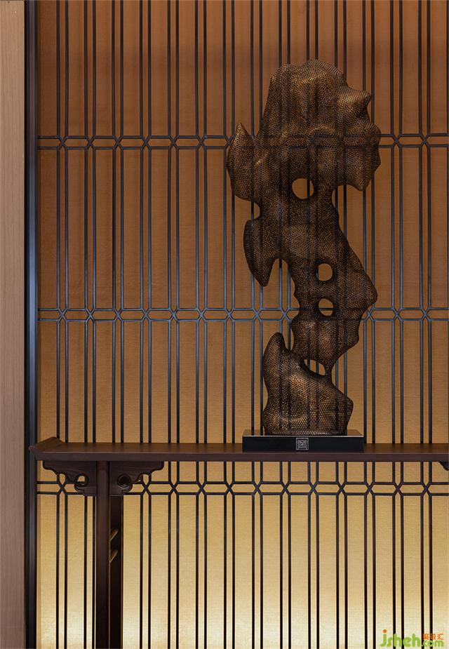 古銅金屬網(wǎng)眼的太湖石藝術(shù)裝置,營(yíng)銷中心設(shè)計(jì)凝聚著清俊靈動(dòng)的東方神韻。人在其中,心緒樸素而無瑣屑。