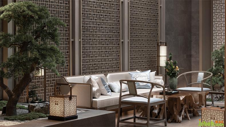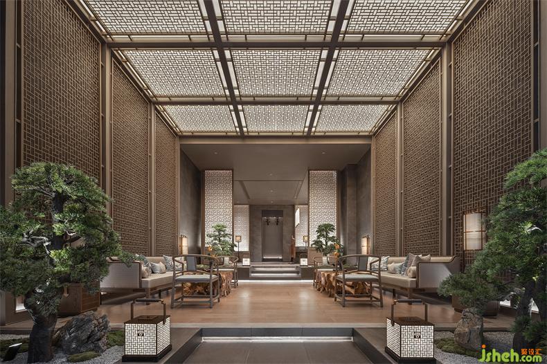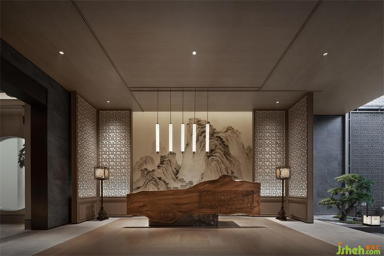 接待大堂整體溫潤開闊,接待臺以質(zhì)樸厚重的木頭作為材料面,在屏風(fēng)的映射下,散發(fā)出大氣穩(wěn)重的觀感。