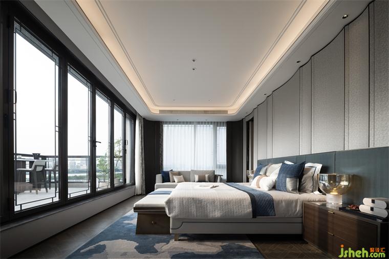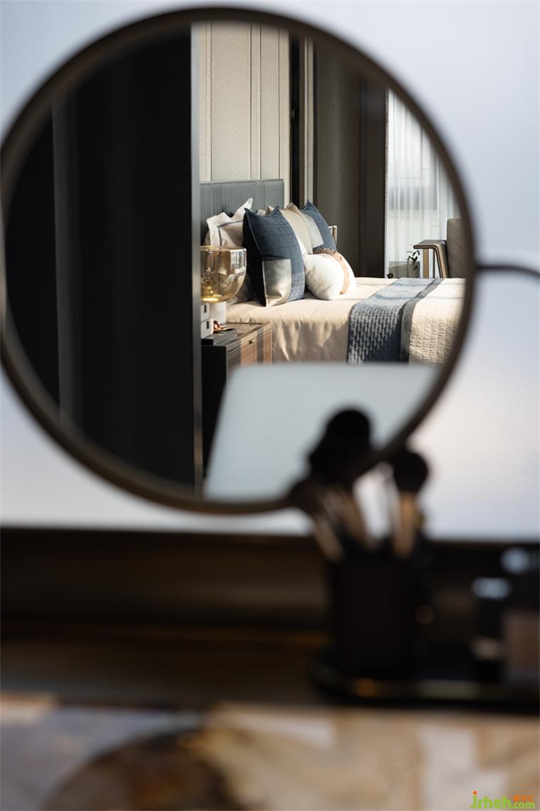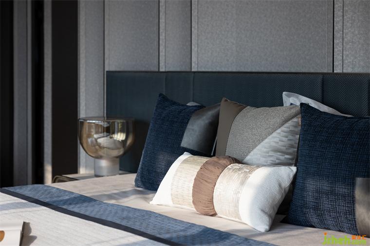 步入二層的主臥空間設(shè)計(jì)彰顯居住者本人的精神追求。在滿足功能與舒適中盡可能的放大空間尺度及視覺感受。在延續(xù)整體風(fēng)格的基調(diào)之上,融合不同顏色深淺、材質(zhì)、肌理,柔軟的床品與地毯等顯示漸進(jìn)的層級關(guān)系,高級又帶給人內(nèi)心的寧靜安定。