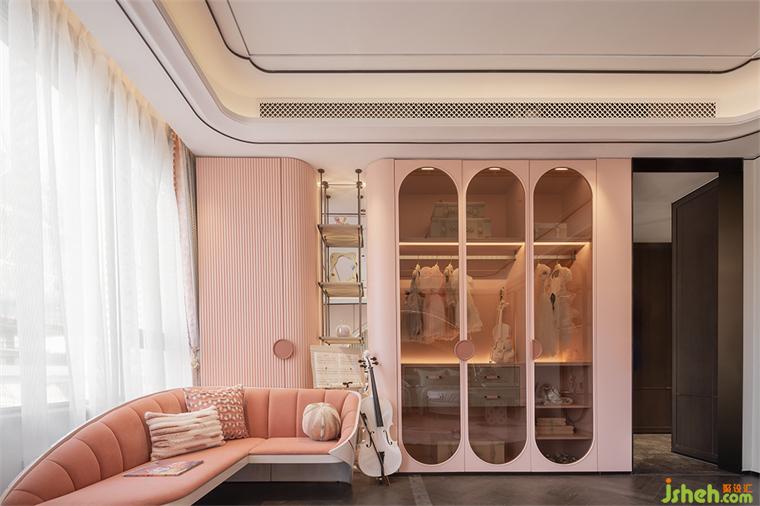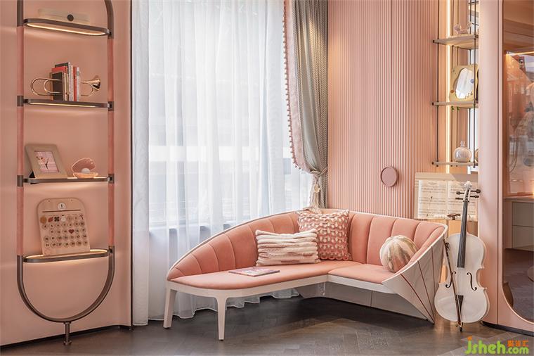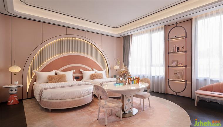 女孩房以功能區(qū)間的和諧布局,搭配櫻粉色調(diào)的調(diào)染筆觸,樣板房設(shè)計(jì)凸顯女孩房的溫馨和浪漫的氛圍,賦予女孩房一種審美想象的啟蒙,烘托孩子的本真、純粹與美好。