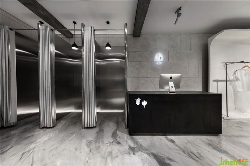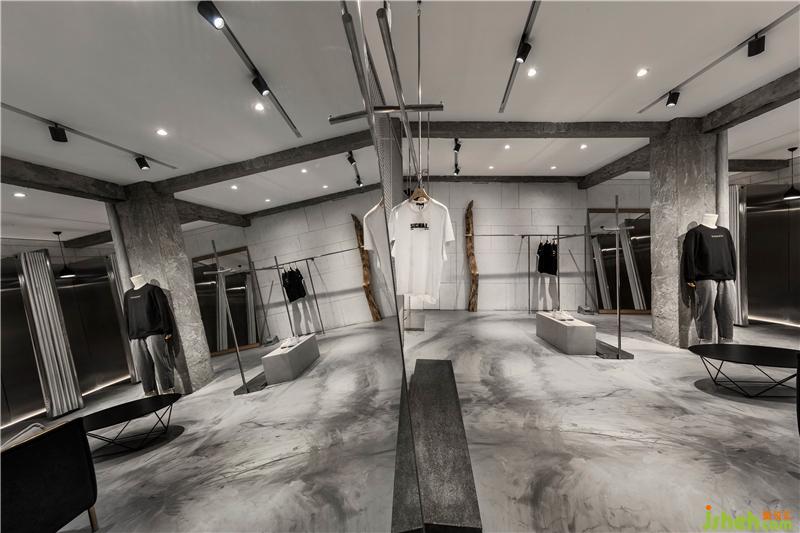 主要材料:拉絲不銹鋼、熟鐵、木絲板、自流平、藝術(shù)漆、原木、