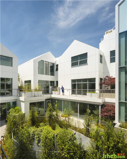 白房子圍合成二層庭院便是社區(qū)公共空間。每家都有面朝院子的觀景陽臺(tái),在戶型排布時(shí)經(jīng)過特別考量,通過陽臺(tái)的角度、距離以及和庭院內(nèi)的綠植的關(guān)系,能夠讓住戶形成一種優(yōu)雅的互動(dòng),在保護(hù)隱私的同時(shí),也感受鄰里守望的溫暖。
