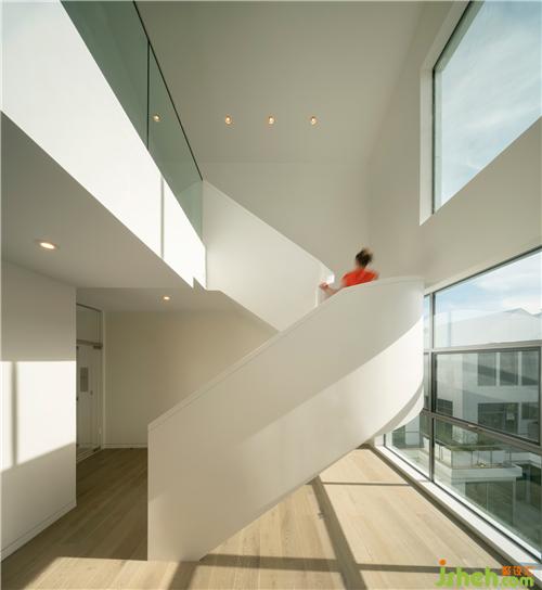 4460平方米的建筑包含了商業(yè),2個(gè)單身公寓,8個(gè)家庭公寓,和8個(gè)躍層戶型。MAD試圖在緊湊的條件下盡量做到“私密性”和“社區(qū)性”兩種特質(zhì)。不同于傳統(tǒng)公寓,每戶都有獨(dú)立的進(jìn)出動(dòng)線,并且結(jié)合當(dāng)?shù)刈≌攸c(diǎn),幾乎每一家都是“小社區(qū)”里擁有獨(dú)立屋頂?shù)摹靶》孔印?。?huì)所設(shè)計(jì)