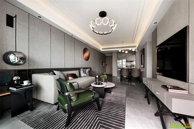 背景墻延續(xù)客廳的精致現(xiàn)代風(fēng),用簡單的線條劃分了區(qū)域,深圳崗宏融湖居精裝提升樣板房設(shè)計以璧龕的形式存在背景墻中間,整個璧龕以不銹鋼裝點,成為電視機頗具品味的歸屬??蛷d考究的家具、燈飾和軟裝飾品,無一不彰顯空間輕奢高貴的風(fēng)范。
