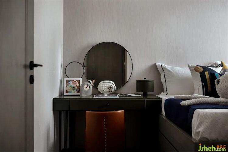 兒童房一改慣有的低幼且斑斕的色調(diào),選擇與整體空間契合的優(yōu)雅灰為主調(diào),反而適用于不同年齡階段的孩童家庭選擇。兒童床采用了榻榻米的設(shè)計,增加了空間收納功能。學習桌與梳妝臺糅合成一處,滿足日常不同場景的需要。深圳崗宏融湖居精裝提升樣板房設(shè)計床上搭配大而有趣的章魚玩偶,孩子見了肯定會忍不住湊上去瞅一瞅,抱一抱。