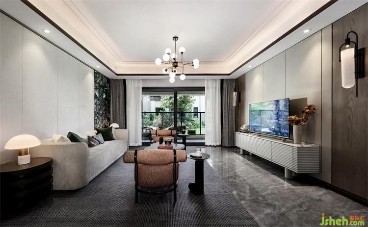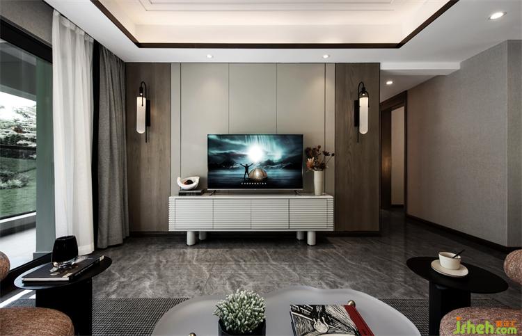 廣州亞運城精裝樣板房設計以米色、灰色為主調(diào),通過對皮革、石材、木作等多元材質(zhì)的運用,營造出純粹、干凈的空間氣質(zhì)。電視背景墻采用對稱式的設計,凝練的直線,條理分明,家具、軟裝、飾品有序排列,與背景墻相呼應,形成空間和諧的秩序之美。
