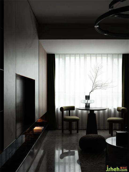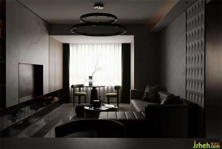 客廳電視背景墻以大塊面的巖板呈現(xiàn),色澤明亮,紋路清晰,底部懸空設計,豐富空間的層次感。休閑區(qū)也可化作多功能區(qū),中洲青島半島城邦樣板房設計采用了木飾面,溫潤自然,利用不同材質劃分空間,一石一木,相互滲透,展露出靜謐安寧的空間氣質。