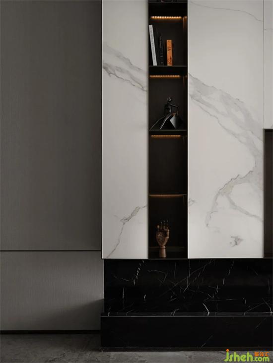 主要材料:白色防水乳膠漆、肌理漆、墻紙、皮革、石材、巖板、煙灰色玻璃、木飾面、烤漆板等
