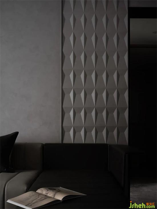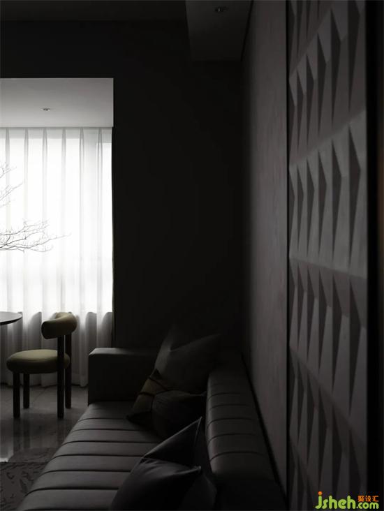 項目以“沐心”為名,運用啞光色、燈光、肌理漆、墻紙、石材與木地板等多元材質,營造出一種侘寂的氛圍,意在弱化樣板房的商業(yè)屬性,呈現(xiàn)出真實的生活場景,把人的關注點從直觀的視覺體驗轉向內在的心理感受,讓心去探索空間。