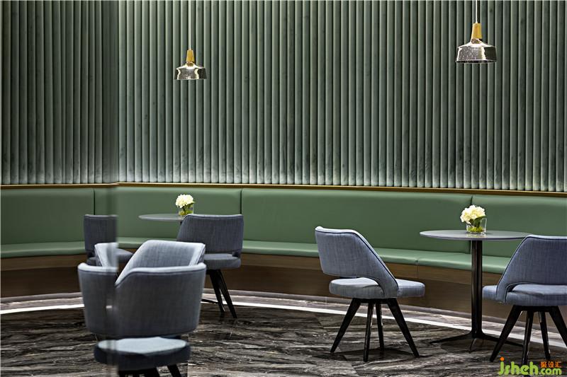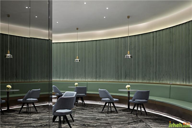 步入咖啡廳,設(shè)計(jì)師運(yùn)用綠色與藍(lán)色,隱喻山與海,在現(xiàn)代建筑中營造自然的氛圍。舒適田園是掙脫現(xiàn)實(shí)的一畝良田,喚醒人們對生活本真面貌的追求。室內(nèi)設(shè)計(jì)師