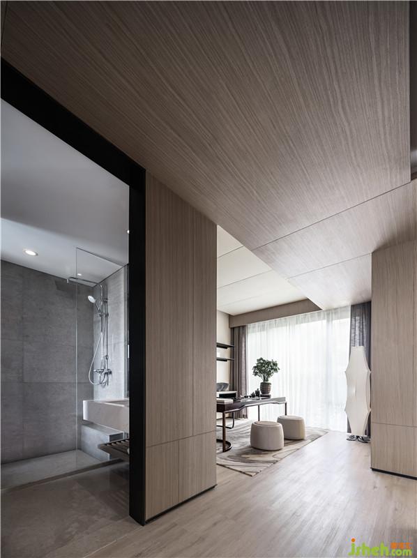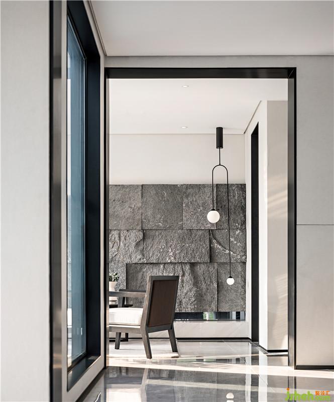 外圍的玻璃幕以及內(nèi)部的大量玻璃材質(zhì)運用,在勾勒出各個區(qū)域結(jié)構(gòu)和線條的同時,保留了空間的整體感,讓人目之所致盡是協(xié)調(diào)與統(tǒng)一之美??蛷d墻壁用原始巖石肌理更突顯了藝術(shù)家對自然對原始的渴望。