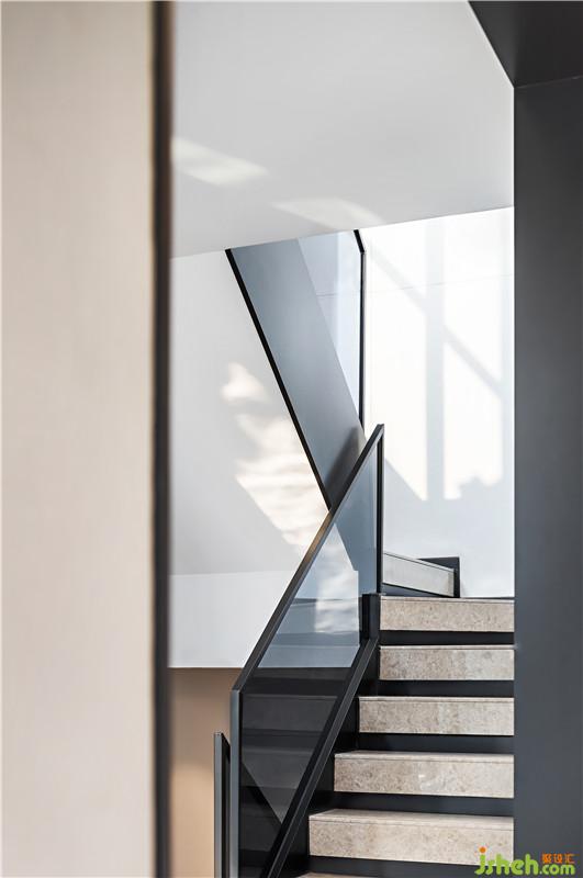 室內(nèi)無處不在的自然光,讓這座建筑同時具備了現(xiàn)代、極簡、舒適的特點。藝術(shù)生活也在其中找到了靈感與平衡點。樓梯的設計有透視效果及平衡作用,使用玻璃及石材的搭配既符合視野的需要,又滿足藝術(shù)家的預期。