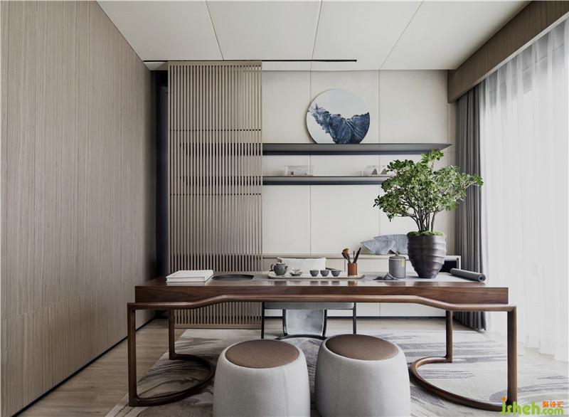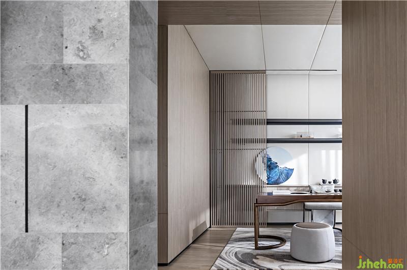 以方形采光井為中軸線,與書畫廳對望的是會客廳,兩者的對稱布置蘊含著東方美學對空間的構(gòu)建,功能的相互呼應也彰顯出“談笑有鴻儒,往來無白丁”的高雅遺風。在這里,古典與現(xiàn)代的美相互映照、相互融合。
