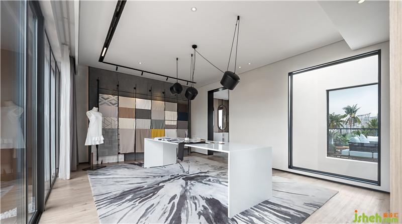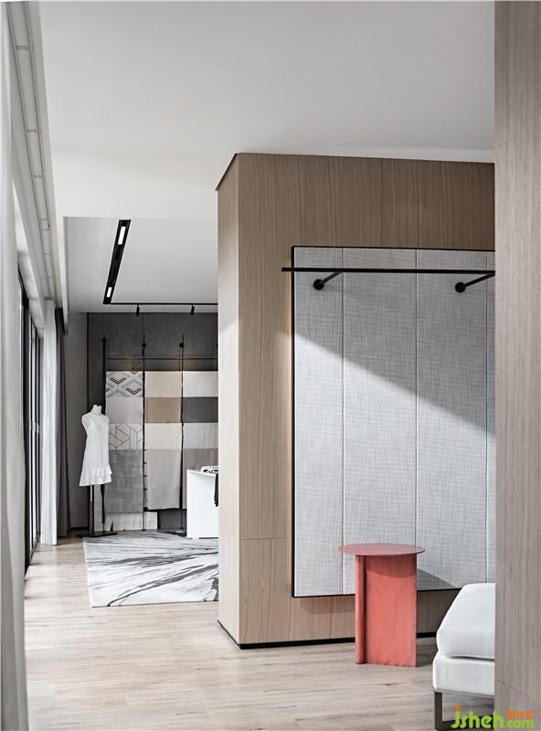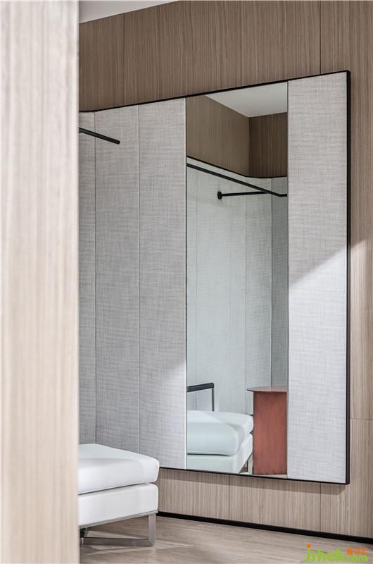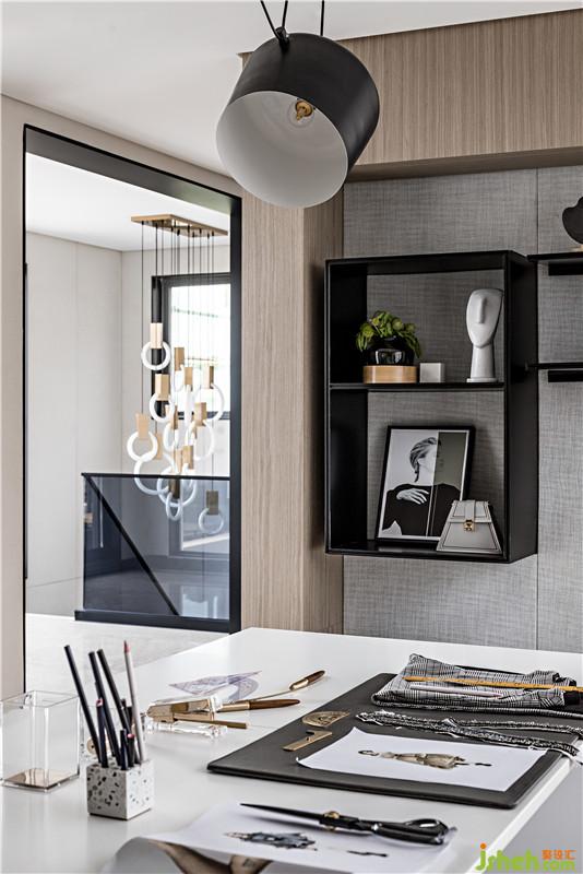 二層工作區(qū)域則通過動線的簡單重構,分立出工作、展示和休憩三個獨立的功能空間。工作區(qū)沒有過多紛繁復雜的裝飾,卻通過采光井巧妙地鏡框式設計,將窗外的景色凝入“畫境”,畫面隨著四季輪回、昏晝更替而變化,折射出的自然之美既是空間中的一抹點睛之筆,也是藝術家“師法自然”的靈感源泉。