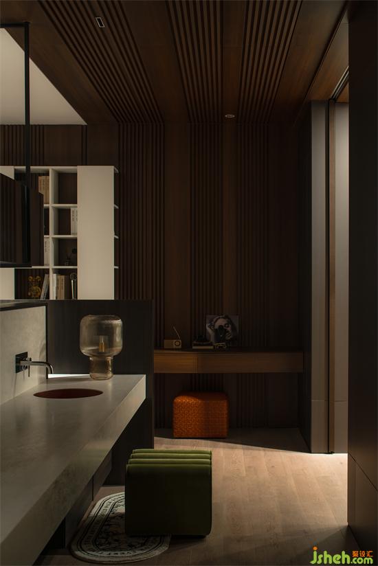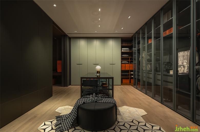 臥室與衣帽間虛實相映,環(huán)形動線串聯(lián)了內(nèi)部空間,同時提升了空間體驗,完善了空間功能的合理性和關(guān)聯(lián)性。空間簡而不凡,生活的秩序感油然而生。