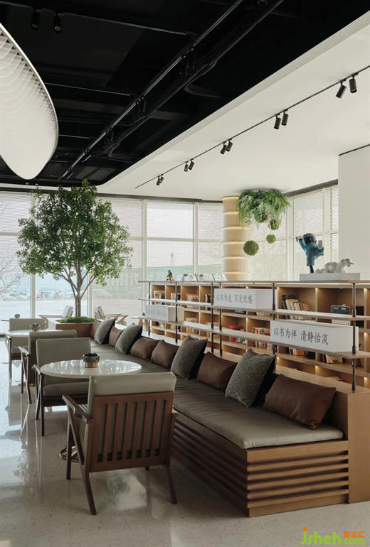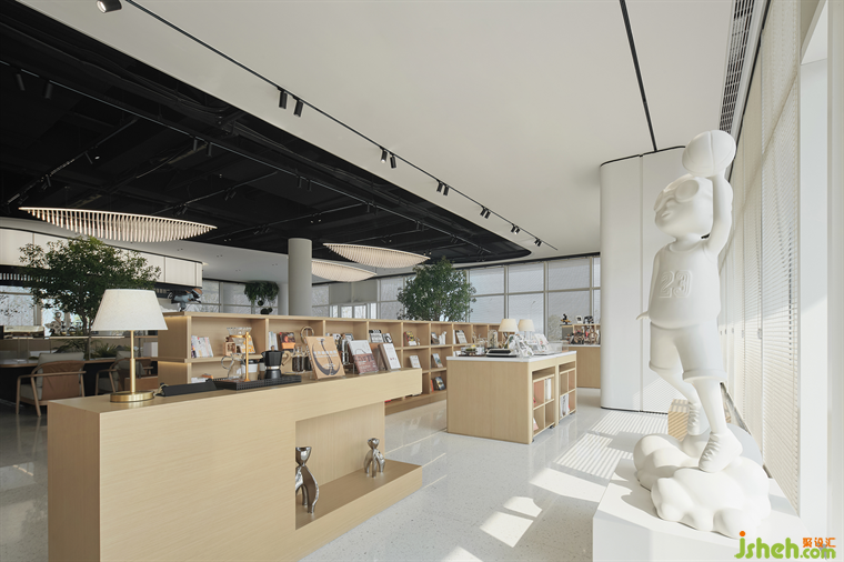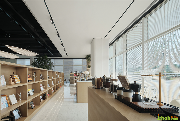 一側文創(chuàng)區(qū),呈演的是生活慢下來的樣子,時代銷售中心設計集合了與當地日常息息相關的周邊產品,多元而豐富。沐光而生,以書為友,淺色木藝帶來的高雅格調濃郁得散不開,不知不覺間讓人將文藝情懷泊于此間,凝住時光。
