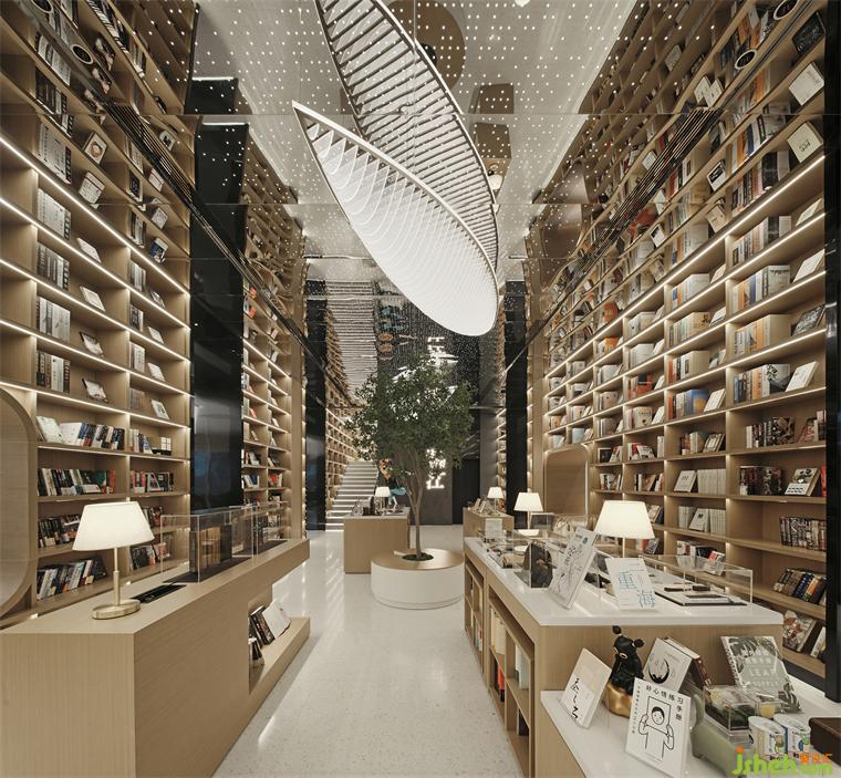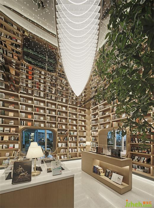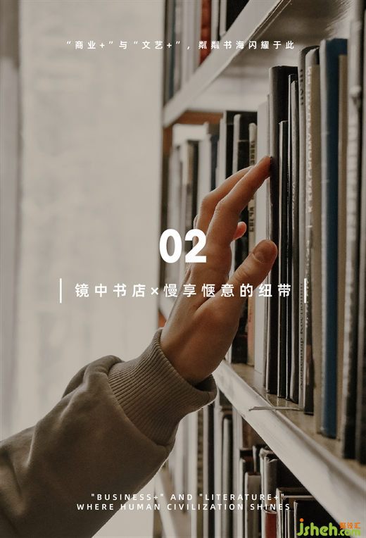 與在地共創(chuàng),與藝文共生,與自然共處,此間的閱讀區(qū)無疑是“售樓處+策展”的社區(qū)商業(yè)新模式。時代銷售中心設計師以墨色鏡鋼,解構天花秩序,星光點點的詩意,喻示悠久流傳的精神文明,升華“流量地標”的人文縱深之感。于此,書店從一種商業(yè)模式,轉向了一種城市生活空間的創(chuàng)新實踐。