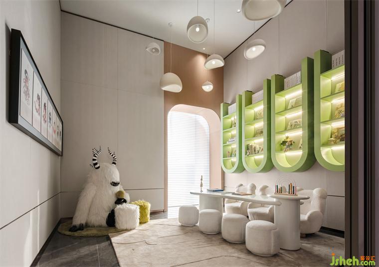 兒童活動區(qū),以山海經(jīng)為主題,打造一個充滿想象力的游樂場所。售樓處設計以長角怪獸為靈感的互動裝置,讓孩子們能夠在玩耍中感受奇趣山海世界。