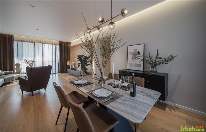 這是一套170平米的大平層,采光良好,南北通透。但由于原有建筑的結(jié)構(gòu)需求,內(nèi)隔墻大部分為承重墻,現(xiàn)有的四房兩廳三衛(wèi)的格局基本定死,但是我們?yōu)榱撕侠硪?guī)劃動線及收納,就只能在細(xì)微處著手了,比如:入戶門廳正對著的一面平實(shí)墻體,我做了凹陷處理,并利用延伸感裝飾畫,將原本死板的格局更加豐富;房間過道部分在不影響兒童房空間的情況下設(shè)置了柜體做收納,這樣空間的存在,分擔(dān)了客餐廳儲物的壓力,讓這兩個公共空間更多的承載視覺的享受。深圳裝修