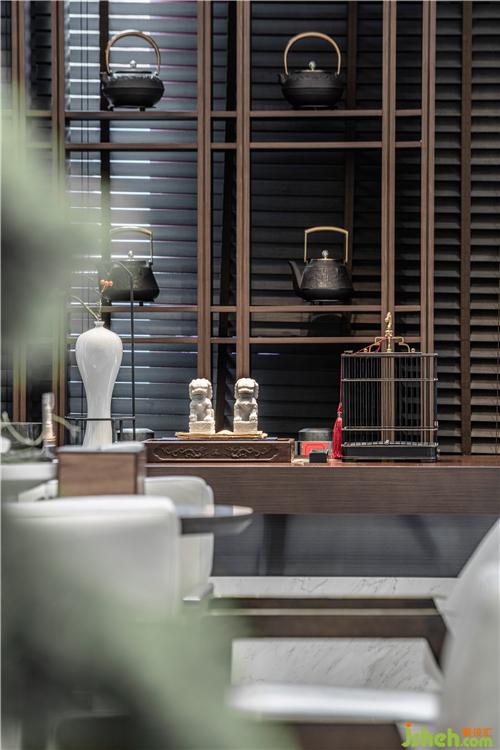 晚風(fēng)駘蕩,循著茶藝區(qū)探去,東方儒雅之氣在空間中飄散開來(lái),一品一呷間,茶甌香鼎話一番清閑,自然意境下打造出逍逸閑適的人居之道。