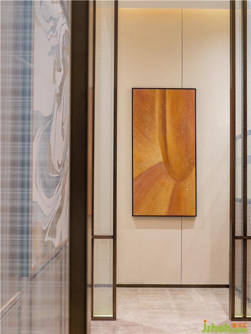 墻面大理石與墻面硬包材質(zhì),一剛一柔,于空間中達到微妙的平衡,碰撞出設(shè)計的深度。