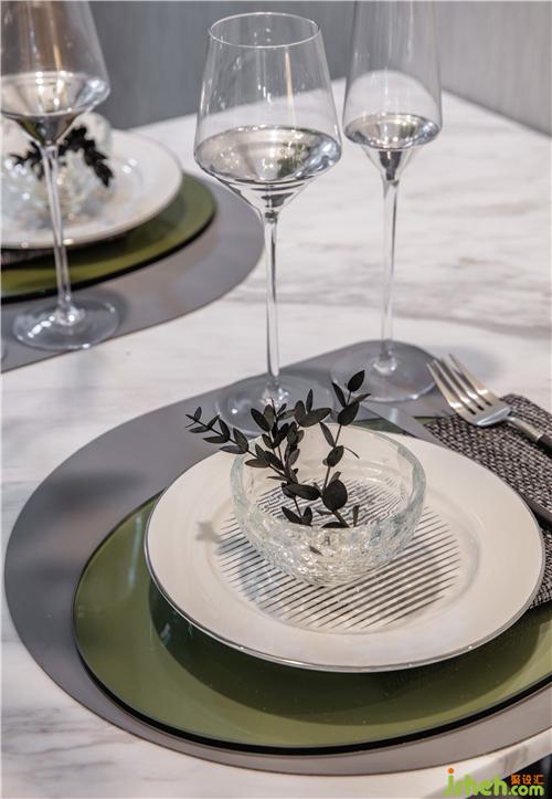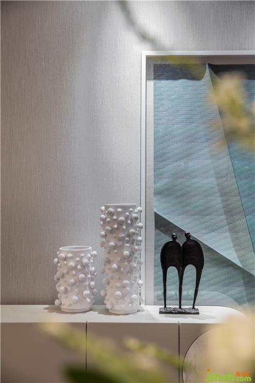 高雅的黑白灰鋪展出守成穩(wěn)妥的空間基調(diào),配抹茶綠色為空間點綴色,樣板房設(shè)計克制下的那一抹綠,是點綴空間下渾然天成的自然美感。