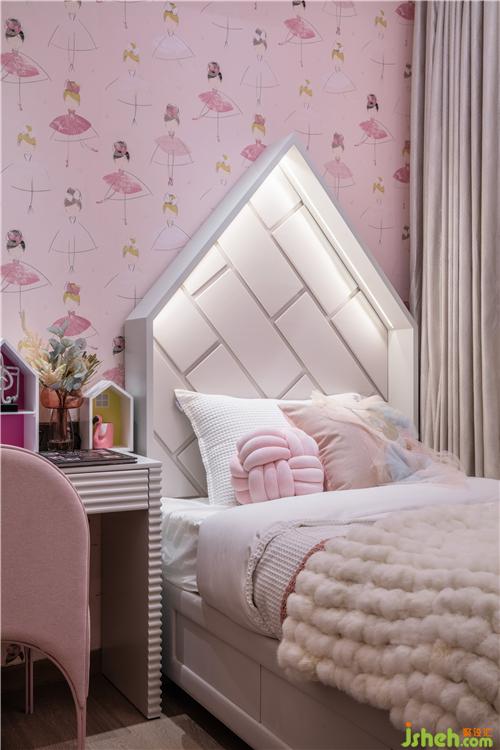 不同于高雅的黑白灰色調(diào),于女孩房來說,粉色的夢幻包裹著整個空間,床品、掛畫、裝飾,柔軟的針織與跳動著的芭蕾少女,天真浪漫的小心思被藏在了細枝末節(jié)處。