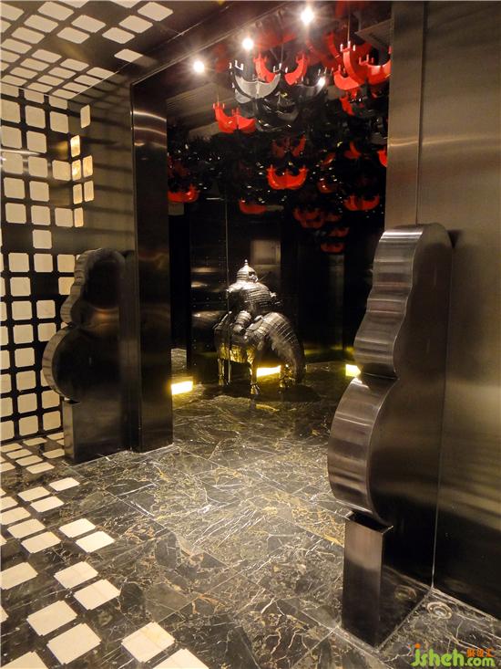 說到嶺南文化,與古老的南越國文明有著不可分割的聯(lián)系。越王包廂的主色調(diào)為紅色,象征著激情,烈火和力量。掛毯的圖案由貴氣的牡丹花演變而來。圖案被切割成不同部分置于墻上的手法打破了整幅圖的墨守成規(guī)。配合墻上一幅氣勢磅礴的龍圖騰,展示出一股王者的霸氣,而龍床前作裝飾的薄紗帳又散發(fā)出一絲女性獨有的溫柔和飄逸。越王包廂的設計平衡了陽剛之氣與陰柔之美,把主題應有的大氣和典雅恰到好處地表現(xiàn)出來。會所設計