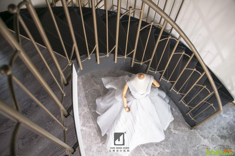 優(yōu)雅的弧形樓梯,黑鋼的磨砂質(zhì)地顯示出堅毅的品質(zhì),金屬質(zhì)地的欄桿帶有圓珠、橢圓造型增添奢華感。會所設計