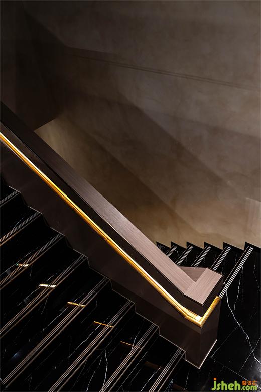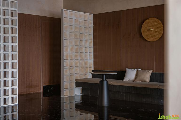 飽和度低的色調(diào)構(gòu)建令人舒適的灰度空間,視覺中心被引至絢麗的裝飾燈處,光暈在鏡面倒影中渲染開來。東方山茶茶室設(shè)計在結(jié)構(gòu)交錯中,凝固的空間注入了流動與韻律,也構(gòu)成了東方山茶的品牌基調(diào),將閑適和格調(diào)娓娓道來。