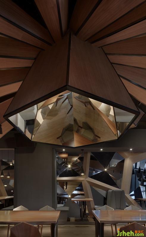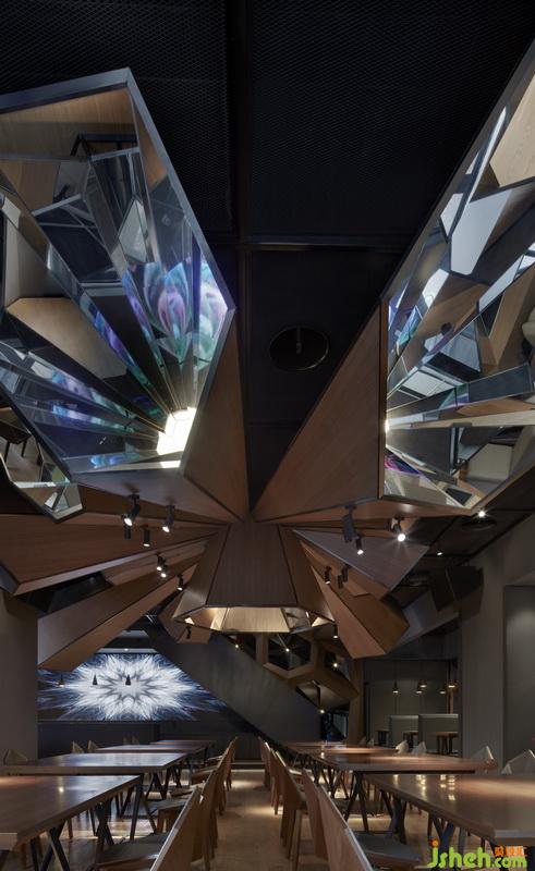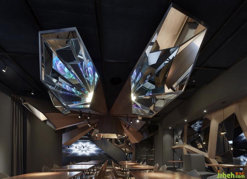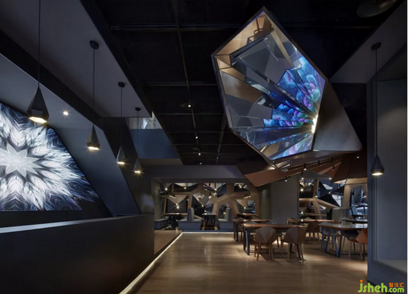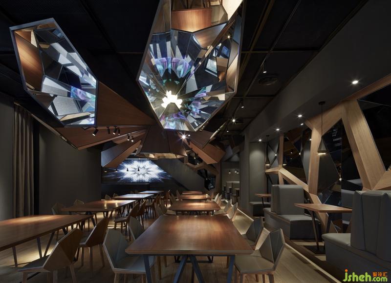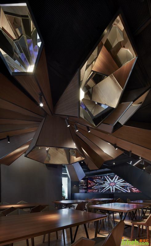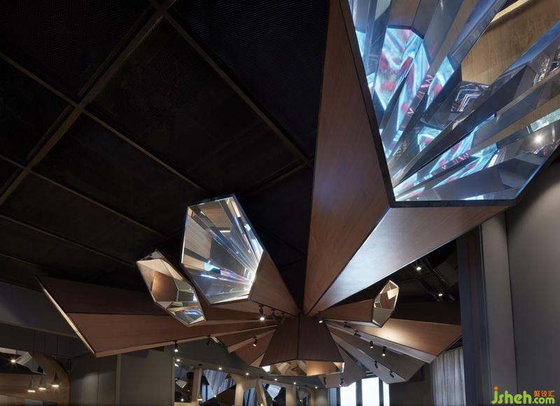 天花:黑色鋼網(wǎng)、木飾面、清鏡