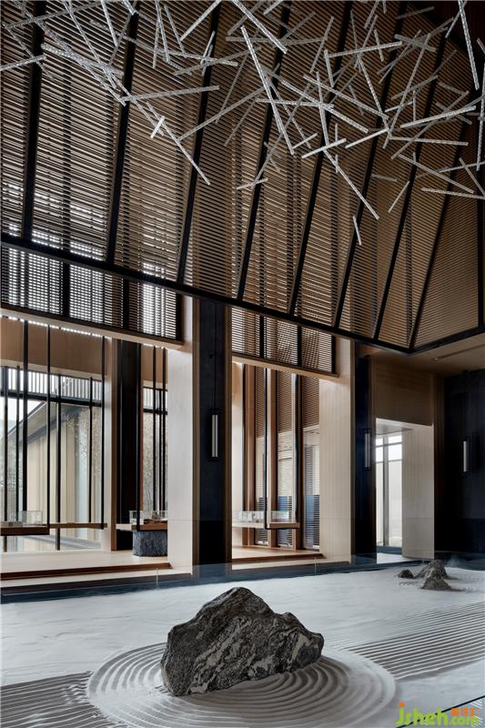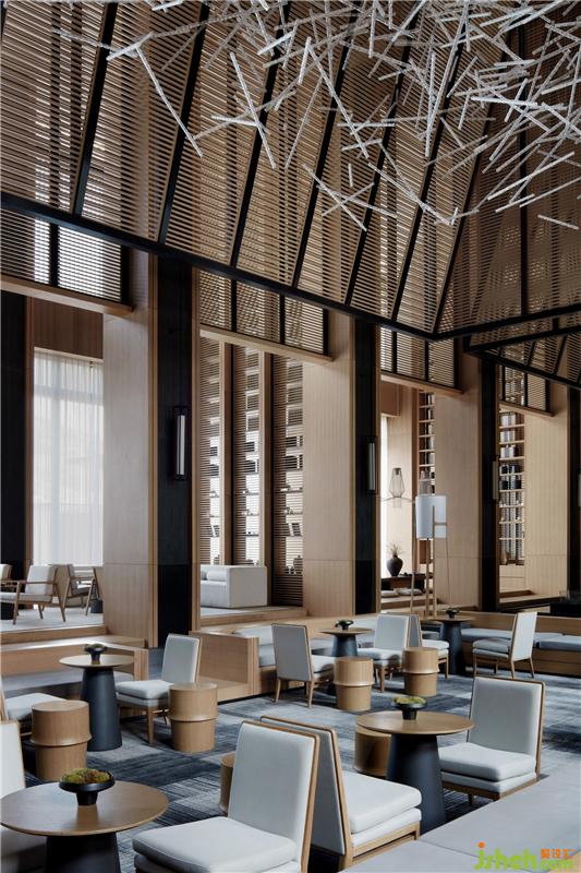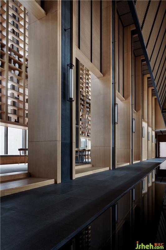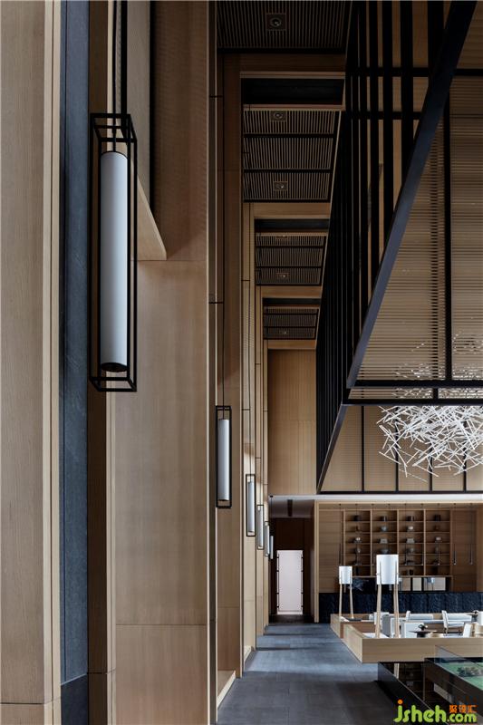 取自漢闕造型的懸置木構(gòu)架和通體落地格柵巧妙的鋪陳開(kāi)來(lái)、構(gòu)成各個(gè)功能區(qū)域的分隔墻體。柱式陣列將空間的動(dòng)靜凝于自身,于光影變幻之中傳遞或古老、或現(xiàn)代的美學(xué)意蘊(yùn),亦體現(xiàn)出東方之境所獨(dú)有的尊崇感和儀式感。裝修公司