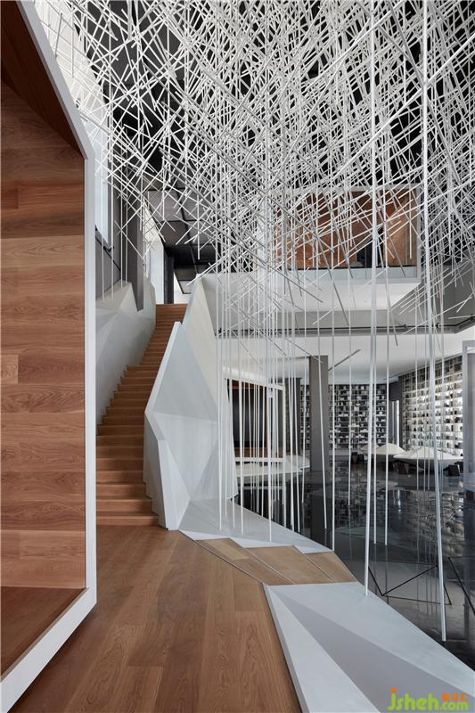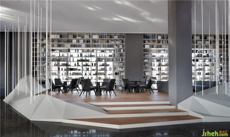 畫面在空間中如山水畫長卷一般鋪陳展開,體現(xiàn)出山高水長的東方山水畫意境,傳達(dá)出中國特有精神層面的表現(xiàn)意念,可見的空間體現(xiàn)出不可見的意境。把中國傳統(tǒng)文化及精神用現(xiàn)代解構(gòu)語言進(jìn)行全新闡述,用現(xiàn)代的設(shè)計(jì)語言和空間裝置藝術(shù)的處理手法詮釋出全新的水墨語境;打造出一處似與不似之間的詩意理想世界。裝修設(shè)計(jì)