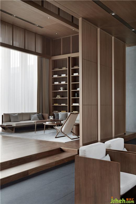 空間以木色和素水泥灰為主調(diào)。設(shè)計(jì)語言的運(yùn)用和材質(zhì)選用上盡力做到簡單平實(shí)少而純粹。木質(zhì)格柵造型被大面積的運(yùn)用在空間當(dāng)中作為各個功能區(qū)域的分割與間隔,讓空間既通透又讓各個功能區(qū)間隔有致??此坪唵蔚脑O(shè)計(jì)除卻了表面的粉飾,簡約簡樸卻引人入勝。原木材質(zhì)的運(yùn)用營造出安靜溫暖的心靈療愈氛圍,從而起到平復(fù)心靈的作用。設(shè)計(jì)手法看似平淡卻釋放了材質(zhì)本身的魅力,讓空間形成一種不事張揚(yáng)的氣場。將具象的空間以抽象化的方式打造出簡約而樸素、靜謐而無常的空靈氣息。
