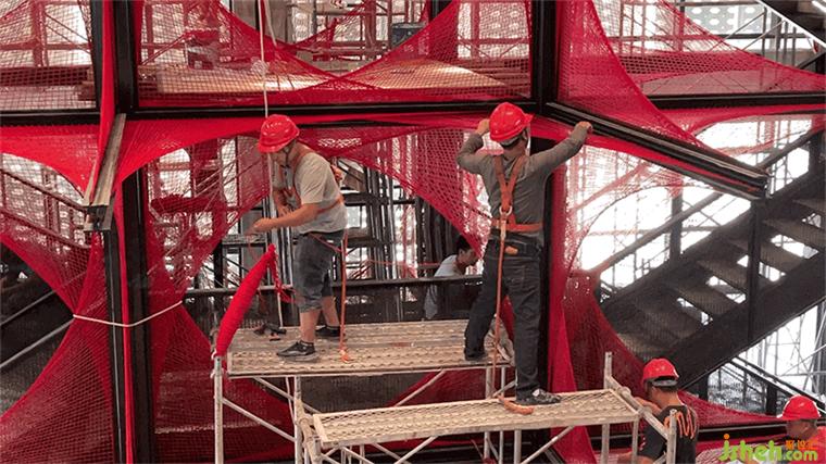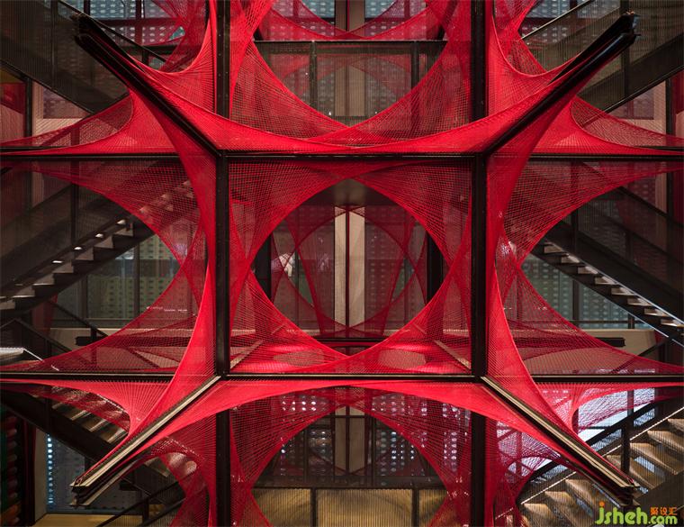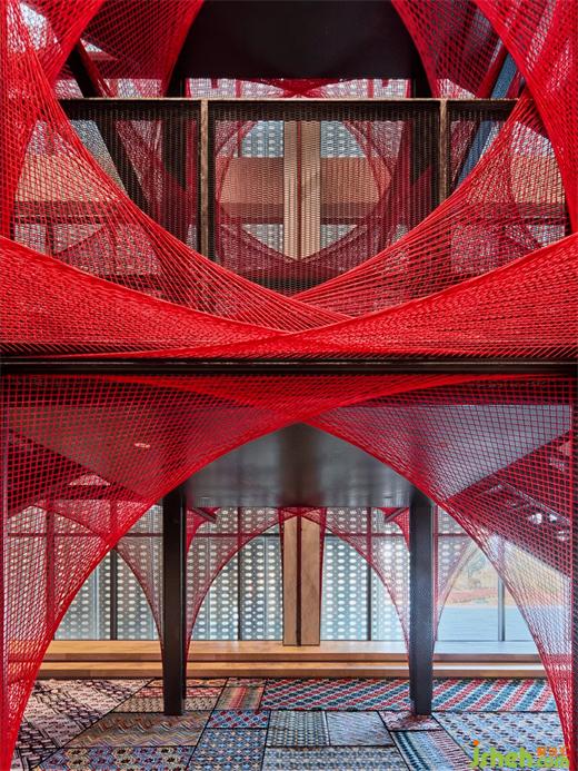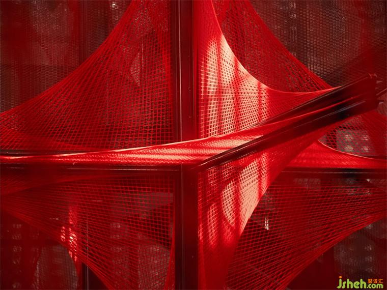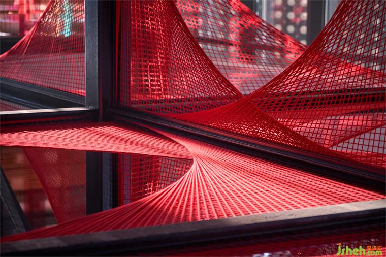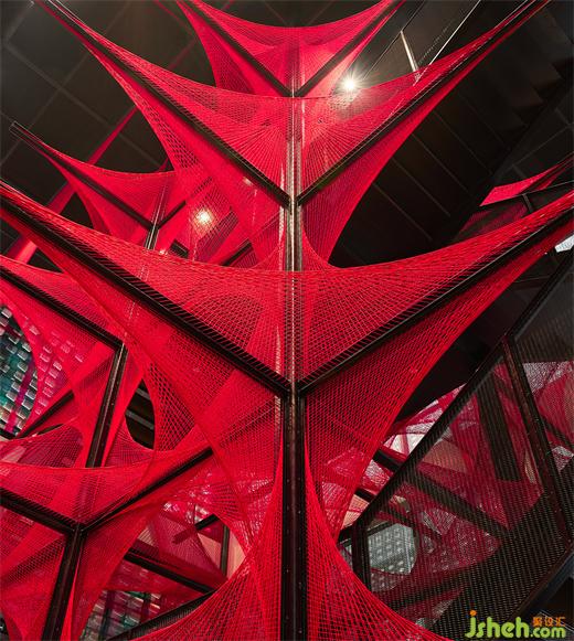 2022年,位于湖南省張家界的中國土家織錦藝術(shù)博物館核心空間設(shè)計施工完成。藝術(shù)博物館裝修設(shè)計約寬8m、高13m、深8m的大型中央裝置“土家之花”由15萬米紅色錦線牽拉編織而成,躍出“土地”直達穹頂,撼動之力讓人不得不重新走近、探尋這一默默千年的傳統(tǒng)手工藝。