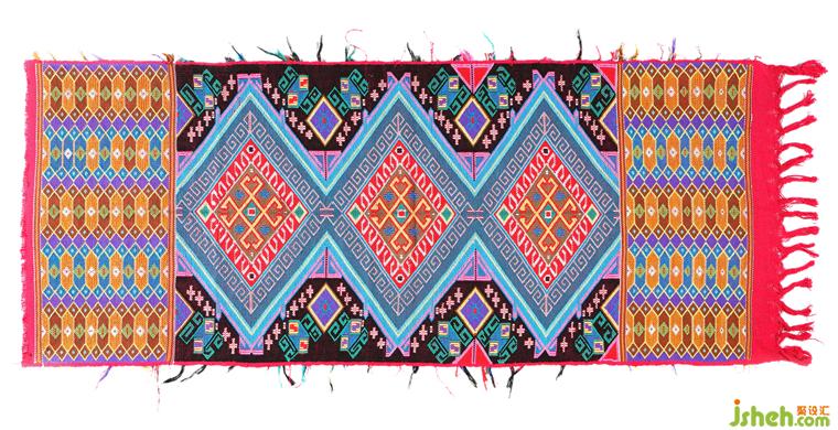 西蘭卡普色彩熱烈、結(jié)構(gòu)嚴(yán)謹(jǐn),紋樣以菱形結(jié)構(gòu)和斜線條為主,講究幾何對稱和反復(fù)連續(xù),2006年以“土家織錦”為名被列入首批國家級非物質(zhì)文化遺產(chǎn)名錄。