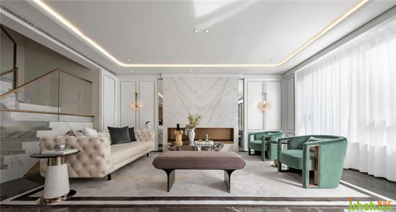 “如同一首浪漫的爵士樂,法式的優(yōu)雅是一段浪漫隨性的曲調(diào),慵懶中帶著經(jīng)典而迷人的韻味。循著這一定調(diào),在本案的疊墅中,我們將時尚感與藝術(shù)性兼具的Art Deco裝飾風(fēng)格與當(dāng)代都市生活相融,以細(xì)膩而生動的描摹,表達(dá)菁英階層的審美品味與生活方式?!?
