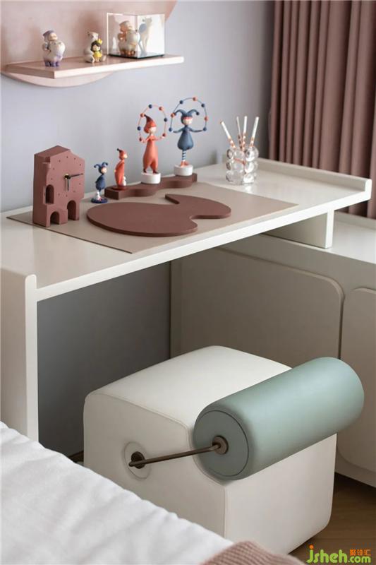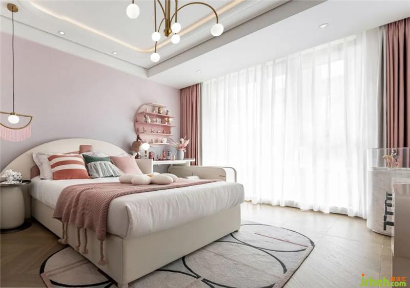 從孩童的視角出發(fā),女兒房如同一個夢幻的童話樂園,沉浸在一片溫柔的粉色中。趣意十足的卡通人物擺件、花朵造型玩偶,在弧線的勾勒中,傳達出純真美好的童趣,承載著女孩天真浪漫的夢想。