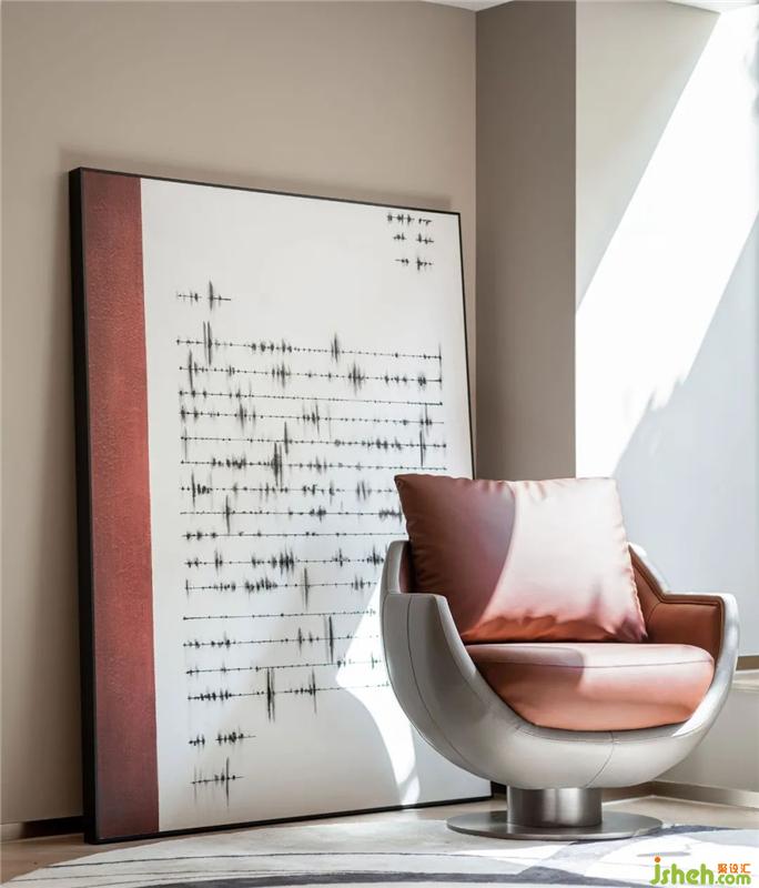 材質與色彩、裝飾與藝術、尺度與比例,在樣板房設計的反復考量下,轉變?yōu)槭孢m自如的空間體驗,從而讓居者從都市的浮躁中脫離而出,在與空間的對話中抒寫生活的意趣,感知寧靜悠然的心境體驗。