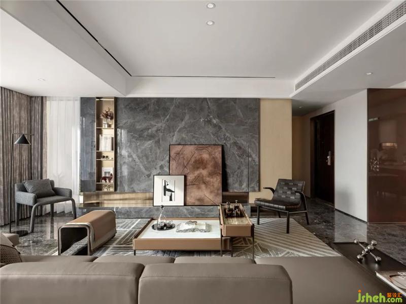 輕奢主義,是一種賦有儀式感的生活態(tài)度,它建立在人們對品質、格調與美學的追求之上。在135㎡戶型中,設計師以愛馬仕文化為創(chuàng)作靈感,將精奢的細節(jié)、高級的質感、雅致的魅力貫穿于空間中,呈演高于日常的生活精髓,以此還原高凈值人群對都市生活的新定義。