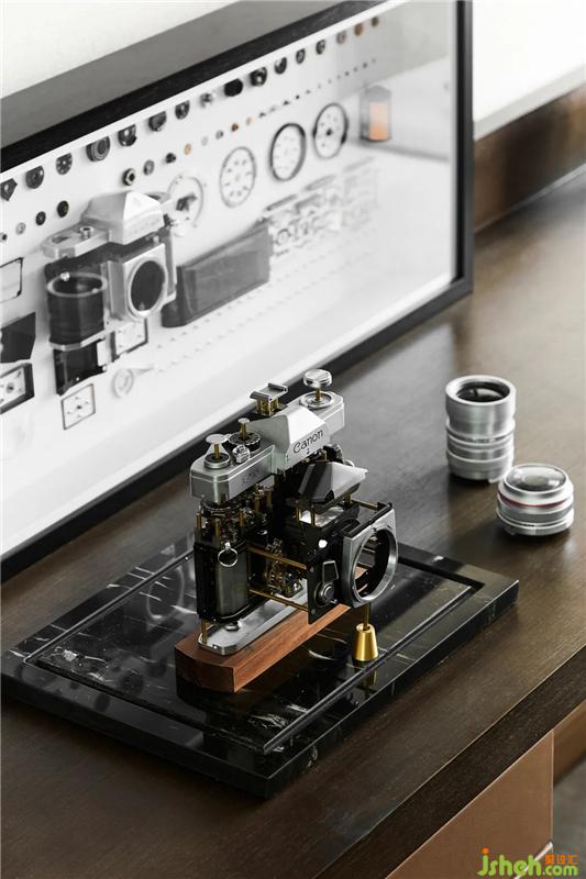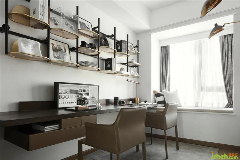 著眼于居者的審美氣度與生活方式,設(shè)計(jì)化繁為簡,在延續(xù)暗橙底色的基礎(chǔ)上,以抽象的幾何線條、布藝與金屬的材質(zhì)碰撞,鋪陳空間的雅致美感,彰顯當(dāng)代審美的意趣與風(fēng)范。而在書房一隅處,掛壁臺(tái)燈、禮帽、相機(jī)擺件等戲劇化的點(diǎn)綴,既呼應(yīng)了都市紳士的空間主題,亦勾勒出生動(dòng)的生活場景。