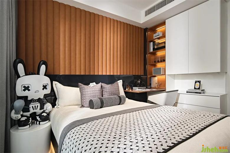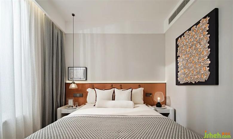 次臥整體延續(xù)主臥的設計風格,小巧的空間面積帶更多的私密與樣板間設計溫馨感,同時也不失精致優(yōu)雅的格調(diào)。