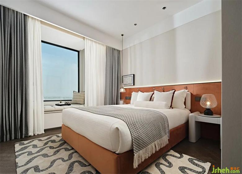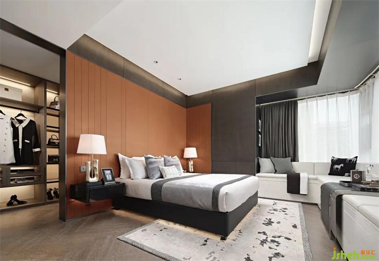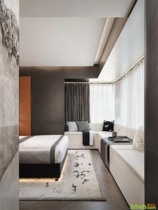 超尺度的主臥套樣板間設計房,汲取精品酒店的套房空間設計靈感。L型大飄窗覆蓋白色皮革坐墊,成為一處優(yōu)雅舒適的轉(zhuǎn)角沙發(fā)。閑暇時光,臨窗而坐,讀書、泡茶、發(fā)呆,回歸生命最樣板間設計本真的從容愜意。