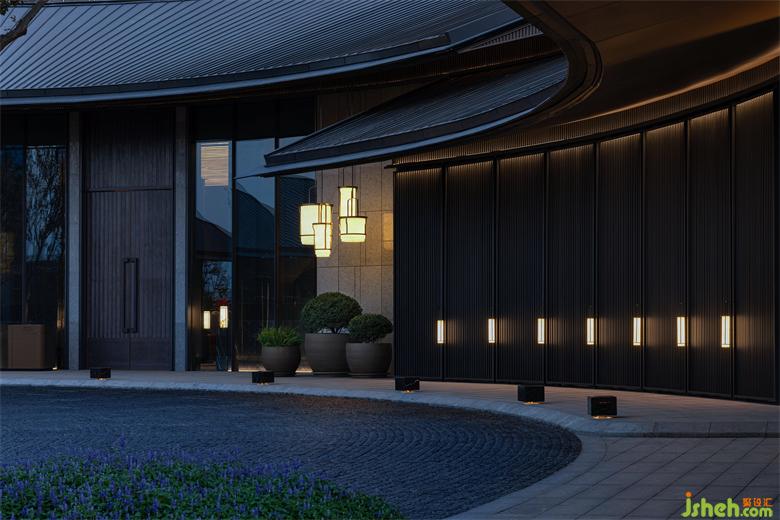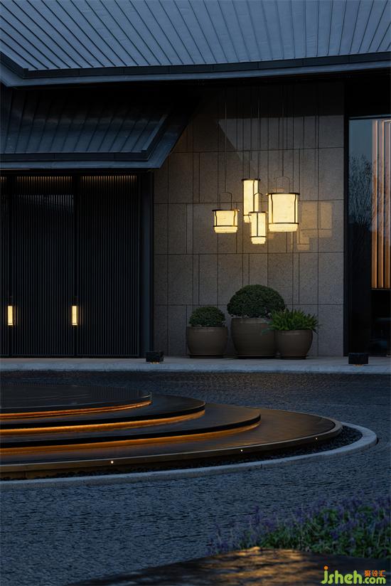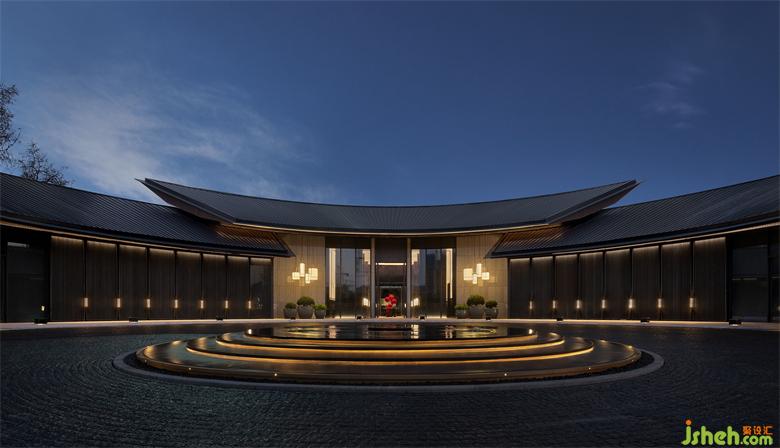 建筑設(shè)計立足于徐州深厚的漢文化傳統(tǒng),通過現(xiàn)代設(shè)計美學(xué)語言演繹東方的恬淡與售樓處設(shè)計唯美。寬廣的大屋檐斜坡設(shè)計,高低錯落,鋪陳出節(jié)奏詩意。移步異景,不沾風(fēng)霜雨雪,亦能感受四季婉轉(zhuǎn)。水景環(huán)島落客區(qū),給予寶格麗酒店式的歸家儀式感。