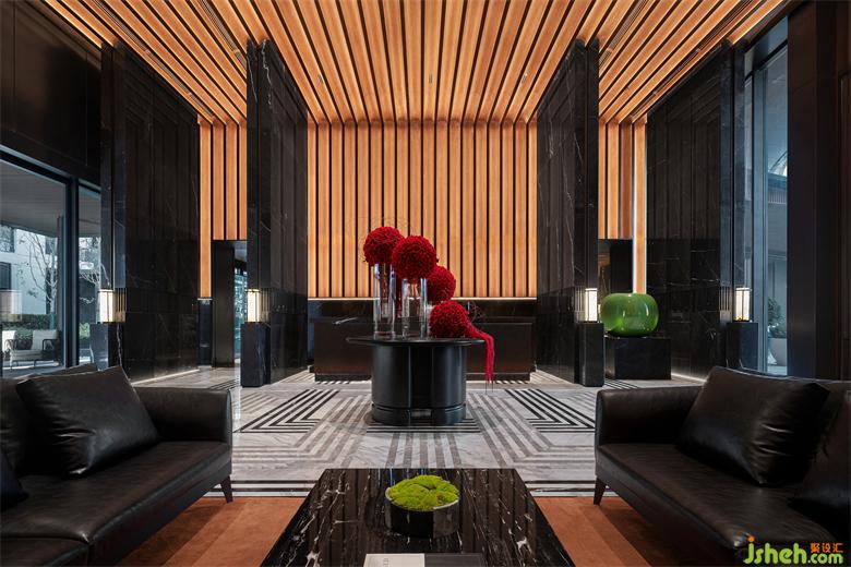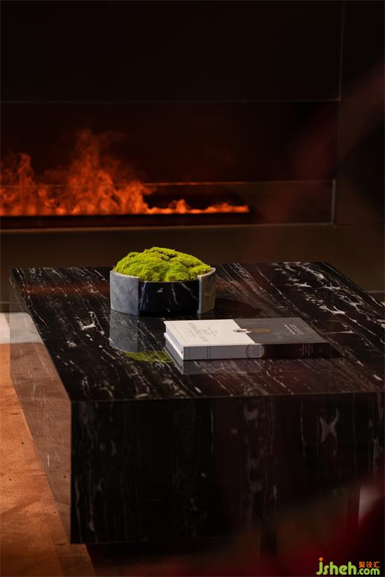 黑色系的墻面與啞光花崗巖、閃耀的燈光、浪漫的壁爐、黑色的真皮沙發(fā),局部點(diǎn)綴跳躍的紅與寶格麗珠寶綠,售樓處設(shè)計(jì)以寶格麗酒店的設(shè)計(jì)元素與理念精華,呈現(xiàn)意式生活的精致與優(yōu)雅。