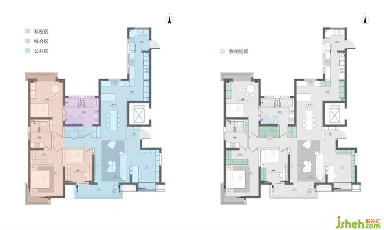 改變男孩房和主臥進(jìn)門(mén)墻體,擴(kuò)大過(guò)道面積后,新增衣帽間,男女主人的衣物可以分開(kāi)存放,極大的增加了儲(chǔ)藏量。書(shū)房后側(cè)設(shè)置了 L 型儲(chǔ)物柜,可以滿足男業(yè)主儲(chǔ)藏鞋物的需求。家裝設(shè)計(jì)每個(gè)空間都設(shè)有高柜去收納各空間所需要收納的物品,使整個(gè)空間在視覺(jué)上保持整潔、舒適。